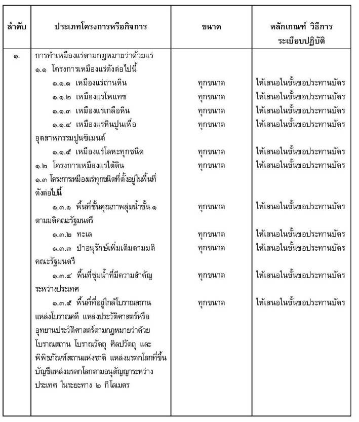 ๒. กรณีโครงการหรือกิจการของส่วนราชการ รัฐวิสาหกิจ ซึ่งไม่ต้องเสนอขอรับความเห็นชอบจาก